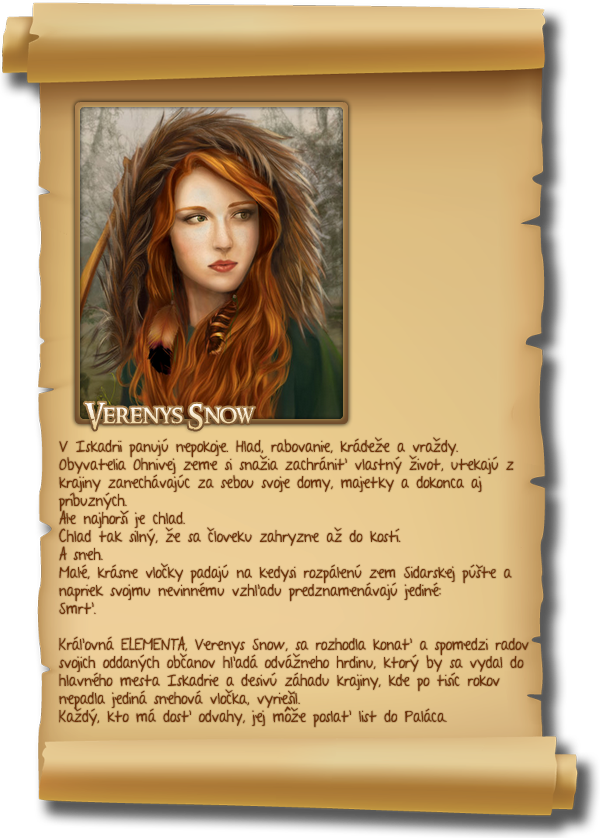 „Vitaj. Som rada, že si odpovedal/-a na moju prosbu. Faktom je, že Iskadria naozaj potrebuje nejakých ľudí. Boli ich tam už desiatky a nikto z nich neuspel. Odborníci tvrdia, že to, čo sa tam deje, má na starosti akýsi Magický kameň, čo je myslím jasné aj tebe. Problémom však je, že ho zatiaľ nikto nenašiel. Alebo presnejšie, nikto sa stadiaľ nevrátil.“